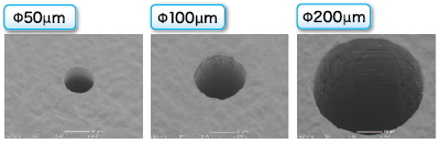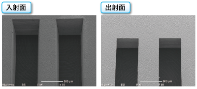 ・従来のレーザに比べ、熱影響が極小の為、バリや溶融物が発生しない。