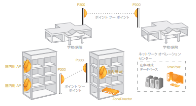 ZoneFlex P300はまた、離れた建物やイーサネットケーブルを敷設できない場所にコントローラ型ワイヤレスLAN(LAN)を拡張したいホテル、学校、倉庫、その他のエンタープライズにとっても理想的です。