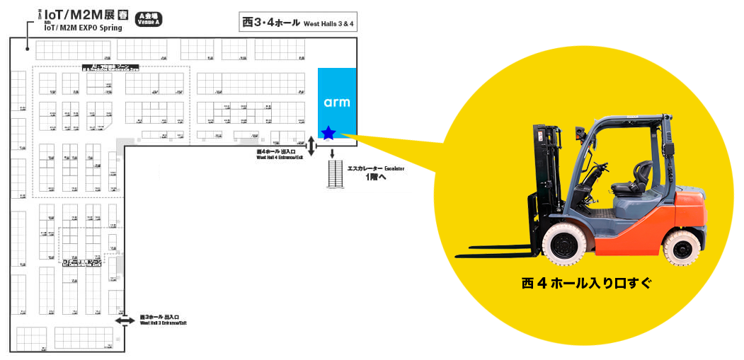 | ブース番号 | 東京ビッグサイト 2F 西4ホール アーム(arm)パビリオンのブース (ブース番号 22-43) ※アーム社関連のIoT分野における最新情報を一度に入手できる機会です。 |